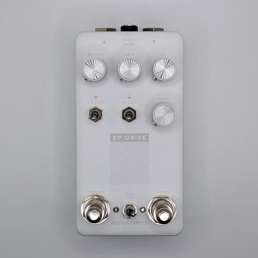 Calamity Drive uses soft touch switching and true relay bypass. Use only a 9V center negative power supply - voltages higher than 9 will damage the pedal.