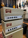 Up for grabs is this beast of a rig from Benson. Comprising of the 30watt Vincent 2 channel amplifier head, a Tall Bird+ Reverb and Tremolo unit and 2x12 speaker cabinet. All in a matching Robin's Egg custom finish with Gold checkered grill cloth.